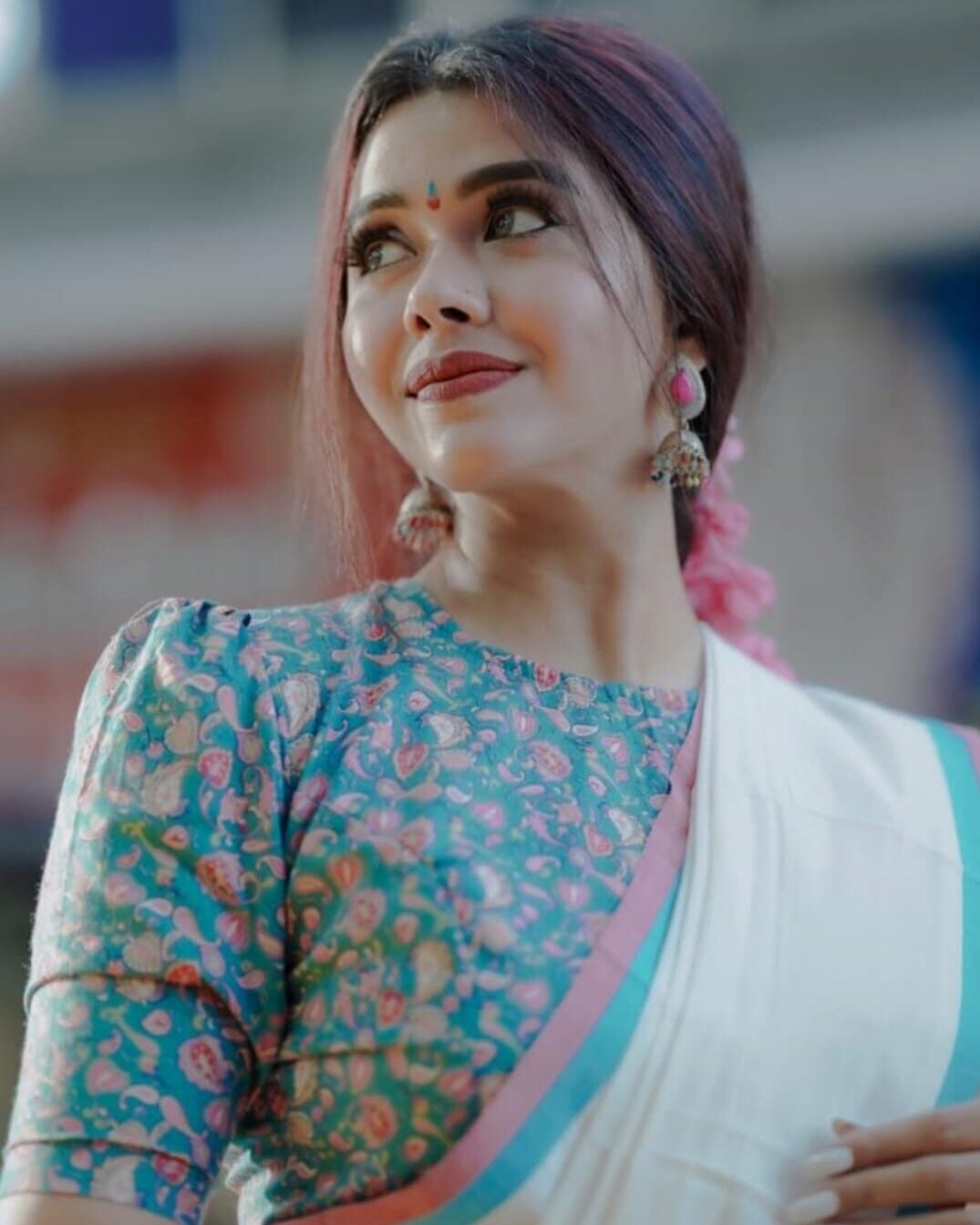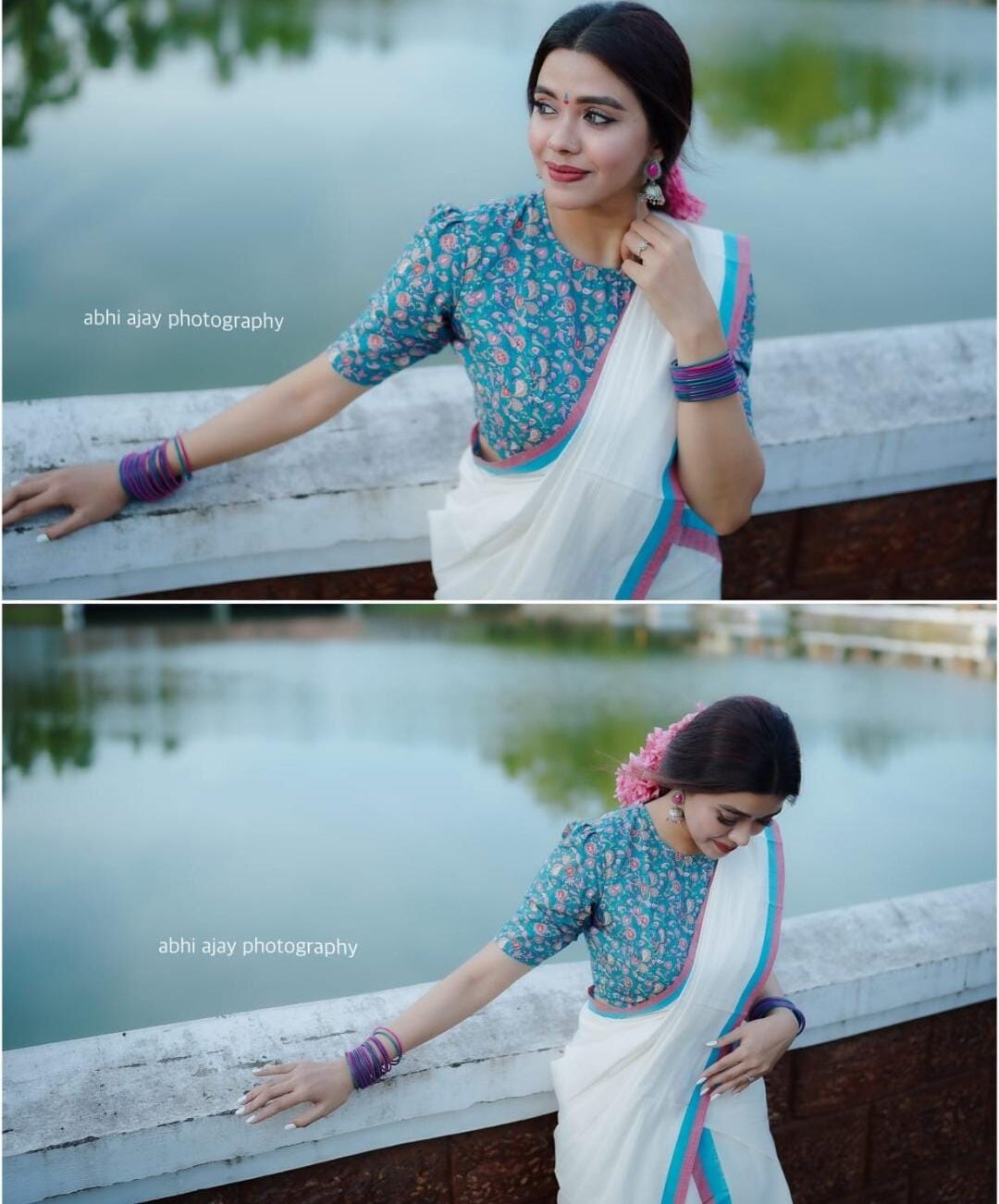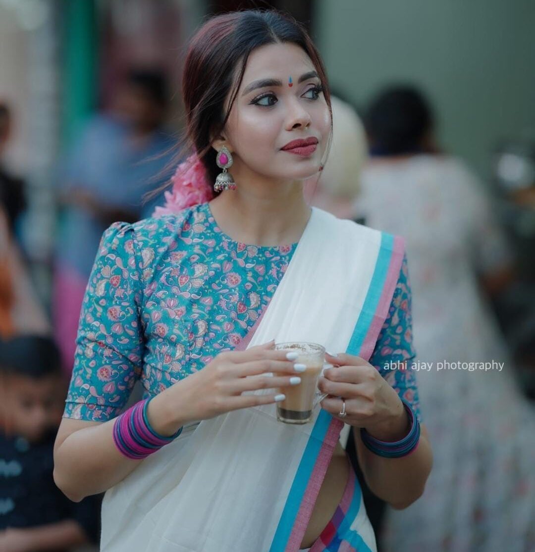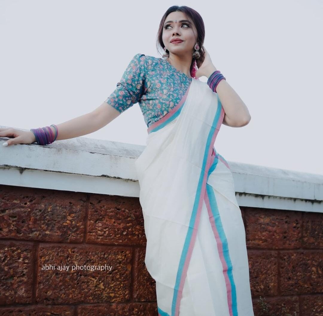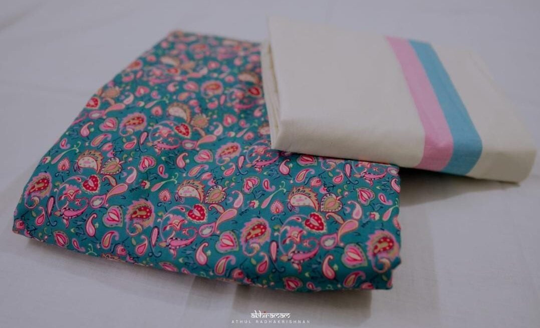 Pure cotton traditional kerala settmund with floral printed blouse material