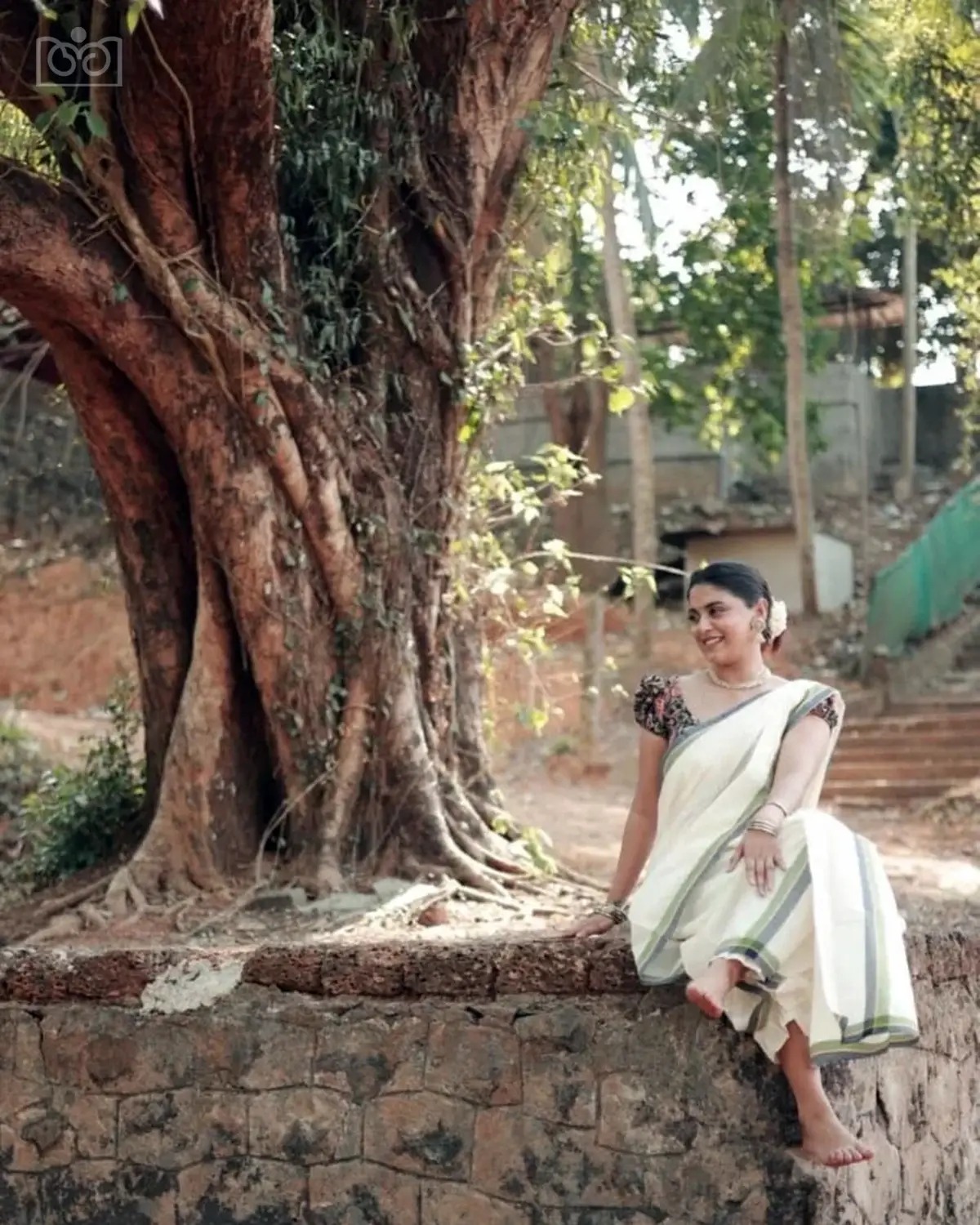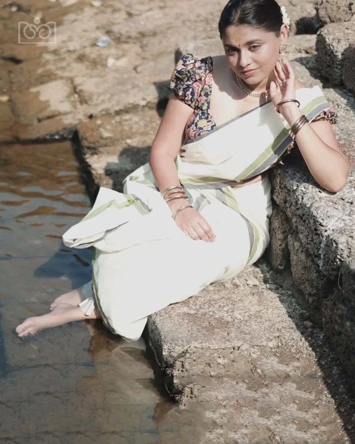 Tricolour mulloth settmund with printed blouse material