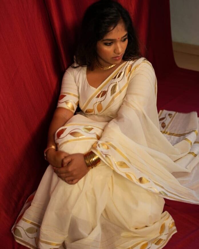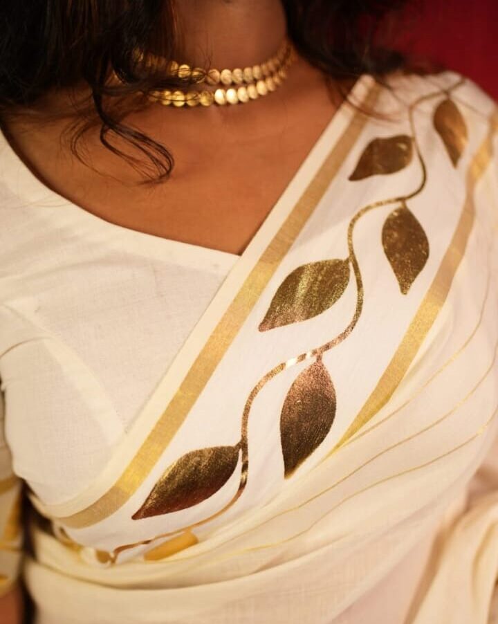Golden Foil printed Premium  Kerala saree with blouse material